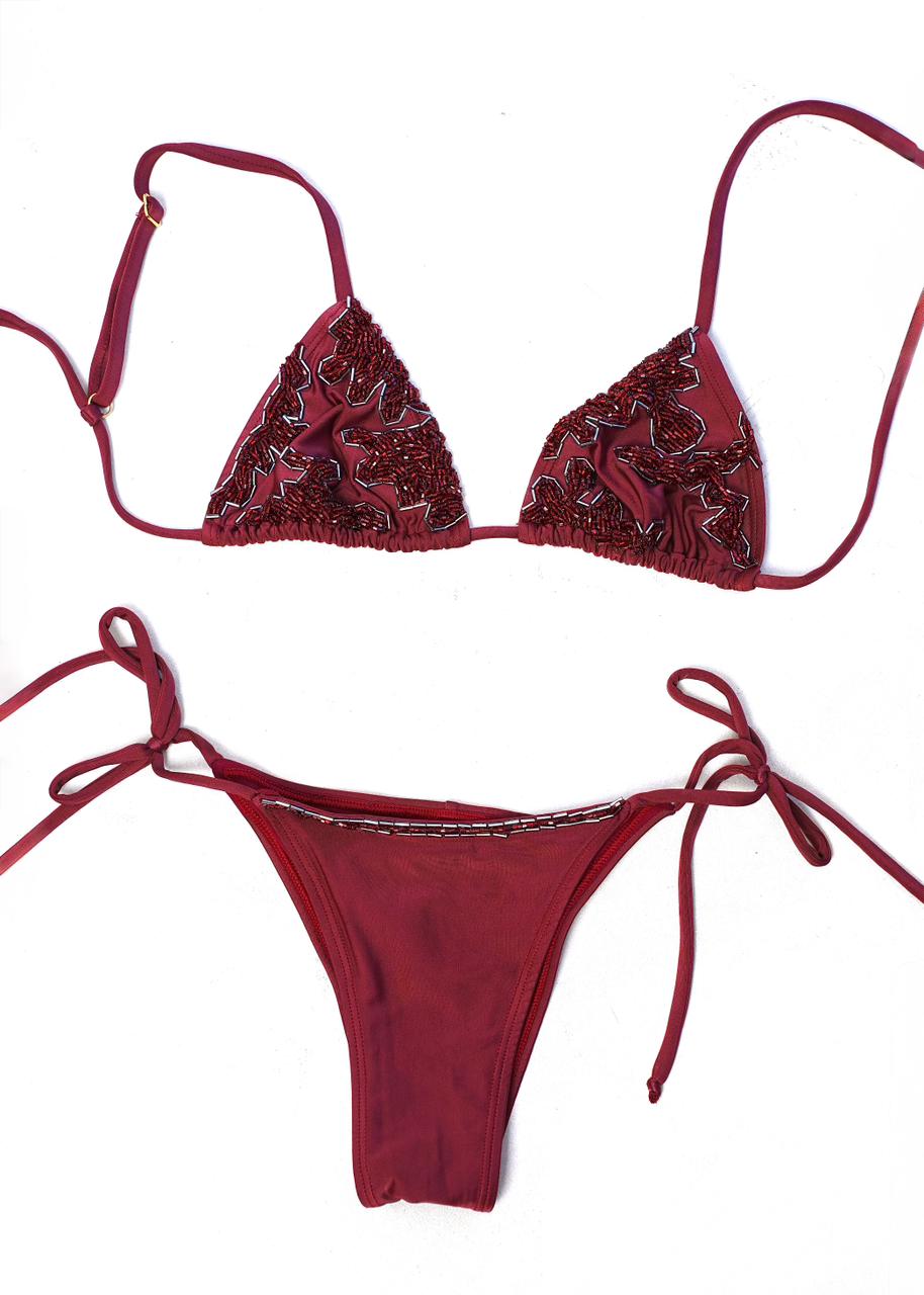 TOP ROUGE BORDADO + CALCINHA ROUGE BORDADA